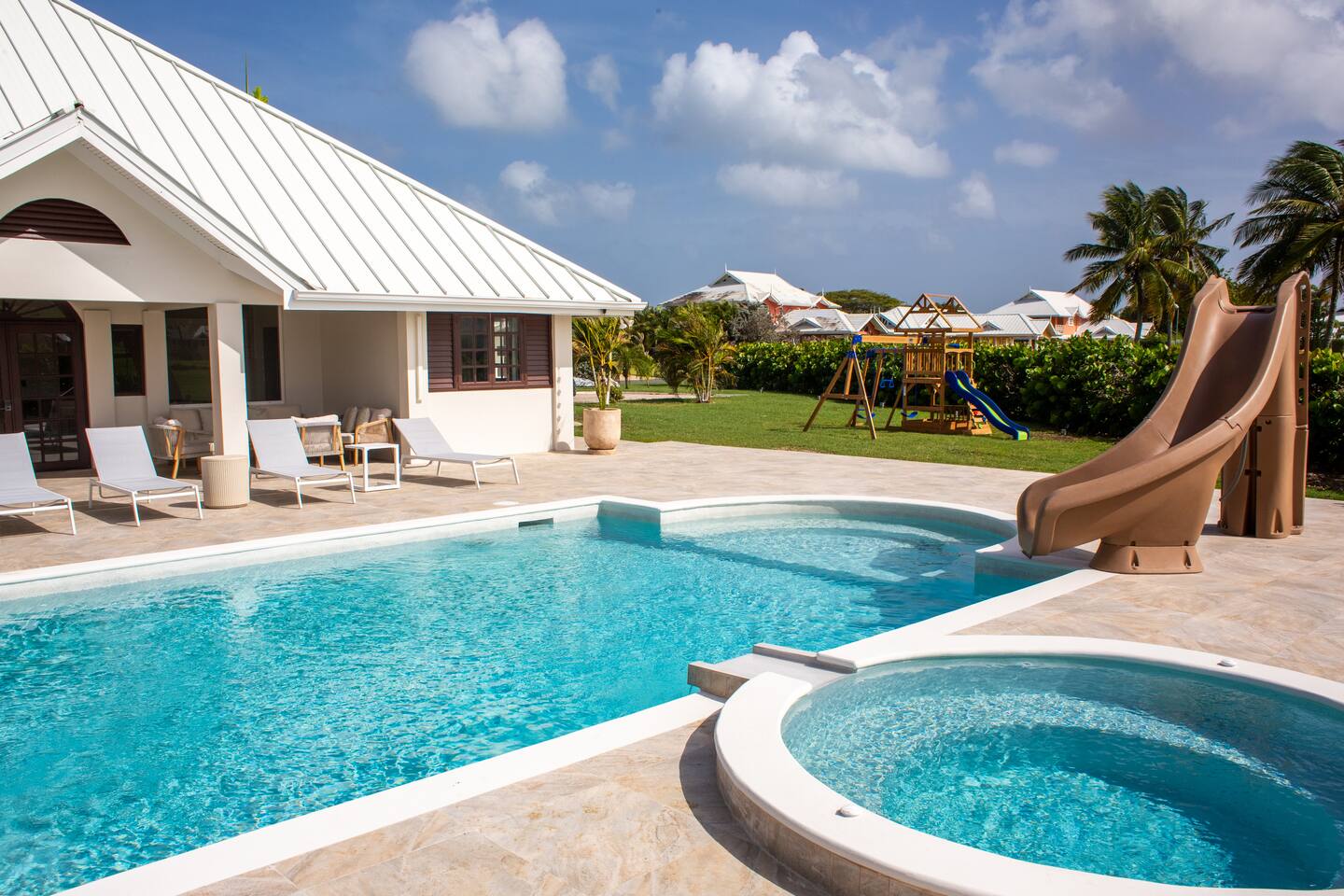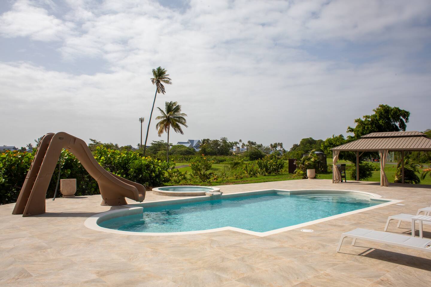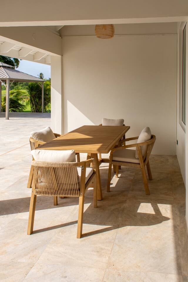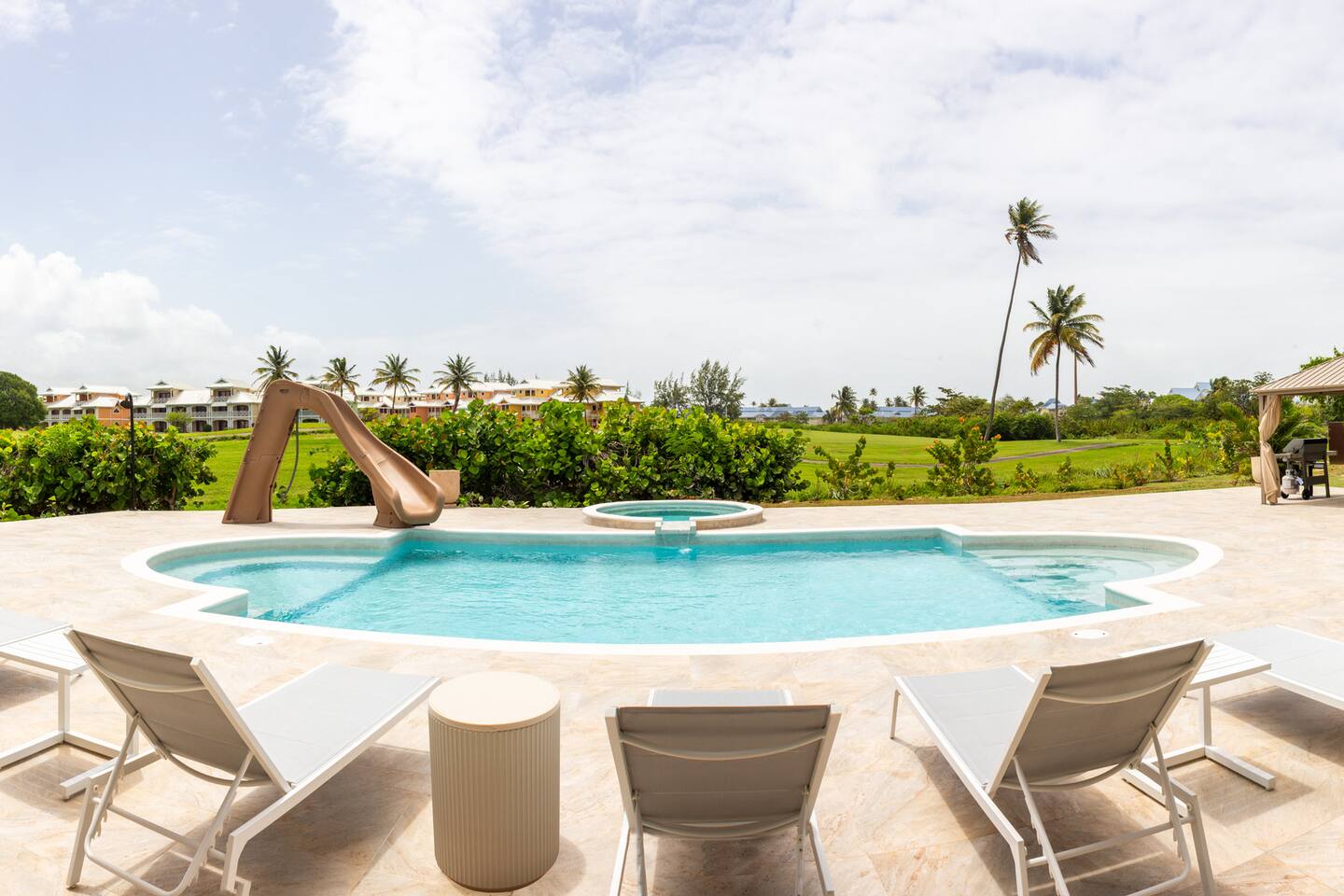 About this space π Tobago's largest luxury villa β sleeps 26 with 18 included in base rate. 6BR/5.5BA on the Tobago Plantations championship golf course. π Private pool + waterslide β’ Jacuzzi β’ Games room with pool table & foosball β’ Kids bunk room (sleeps 8) β’ Japandi dining for 18 β’ Gazebo with fairway views β’ Full A/C β’ Fast WiFi π Gated 24/7 security. Minutes from beaches, marina, restaurants. π° Pricing: 18 included. Guests 19-26 add $50/person/night.