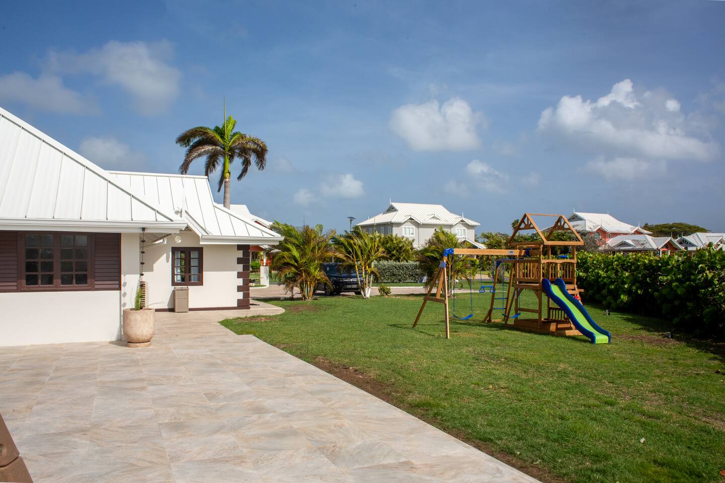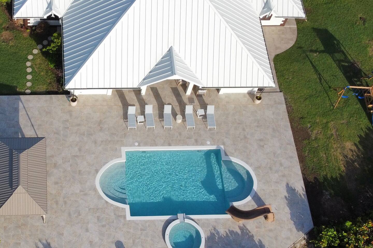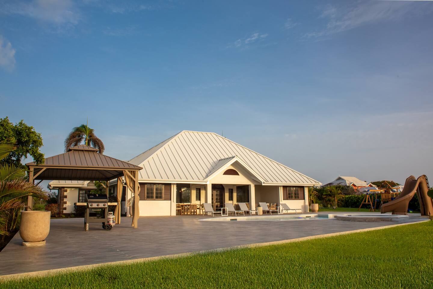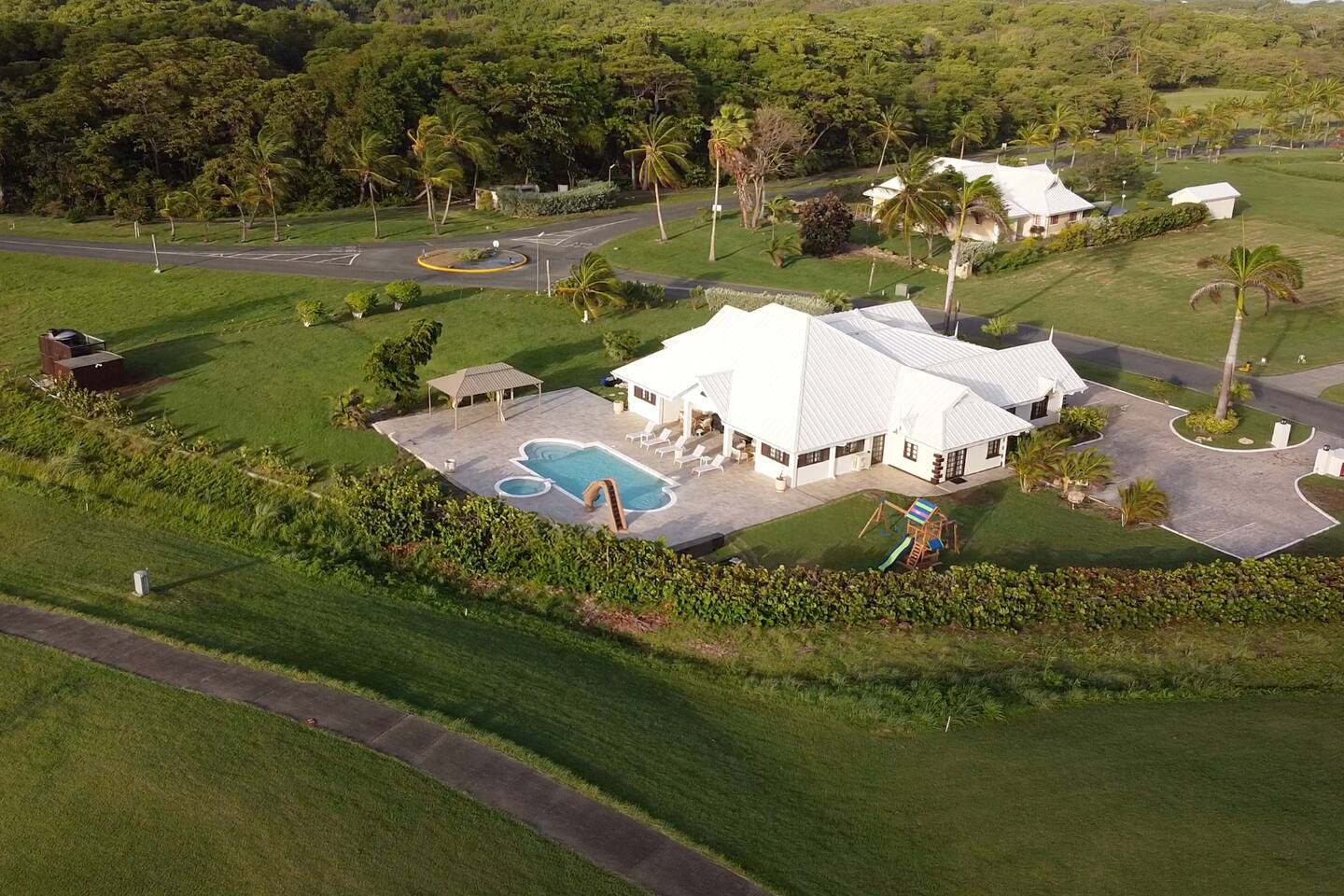 About this space π Tobago's largest luxury villa β sleeps 26 with 18 included in base rate. 6BR/5.5BA on the Tobago Plantations championship golf course. π Private pool + waterslide β’ Jacuzzi β’ Games room with pool table & foosball β’ Kids bunk room (sleeps 8) β’ Japandi dining for 18 β’ Gazebo with fairway views β’ Full A/C β’ Fast WiFi π Gated 24/7 security. Minutes from beaches, marina, restaurants. π° Pricing: 18 included. Guests 19-26 add $50/person/night.